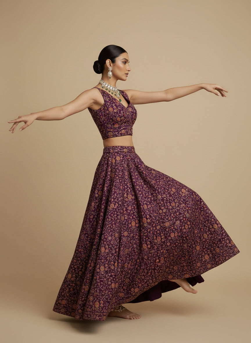 Women's wine embroidered V neck blouse with back open hook and eye closure
