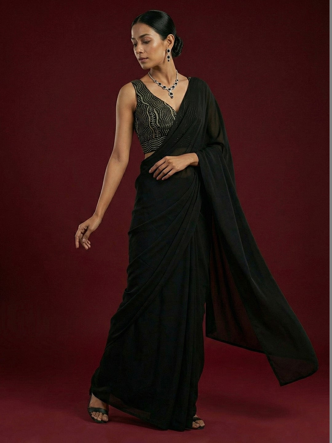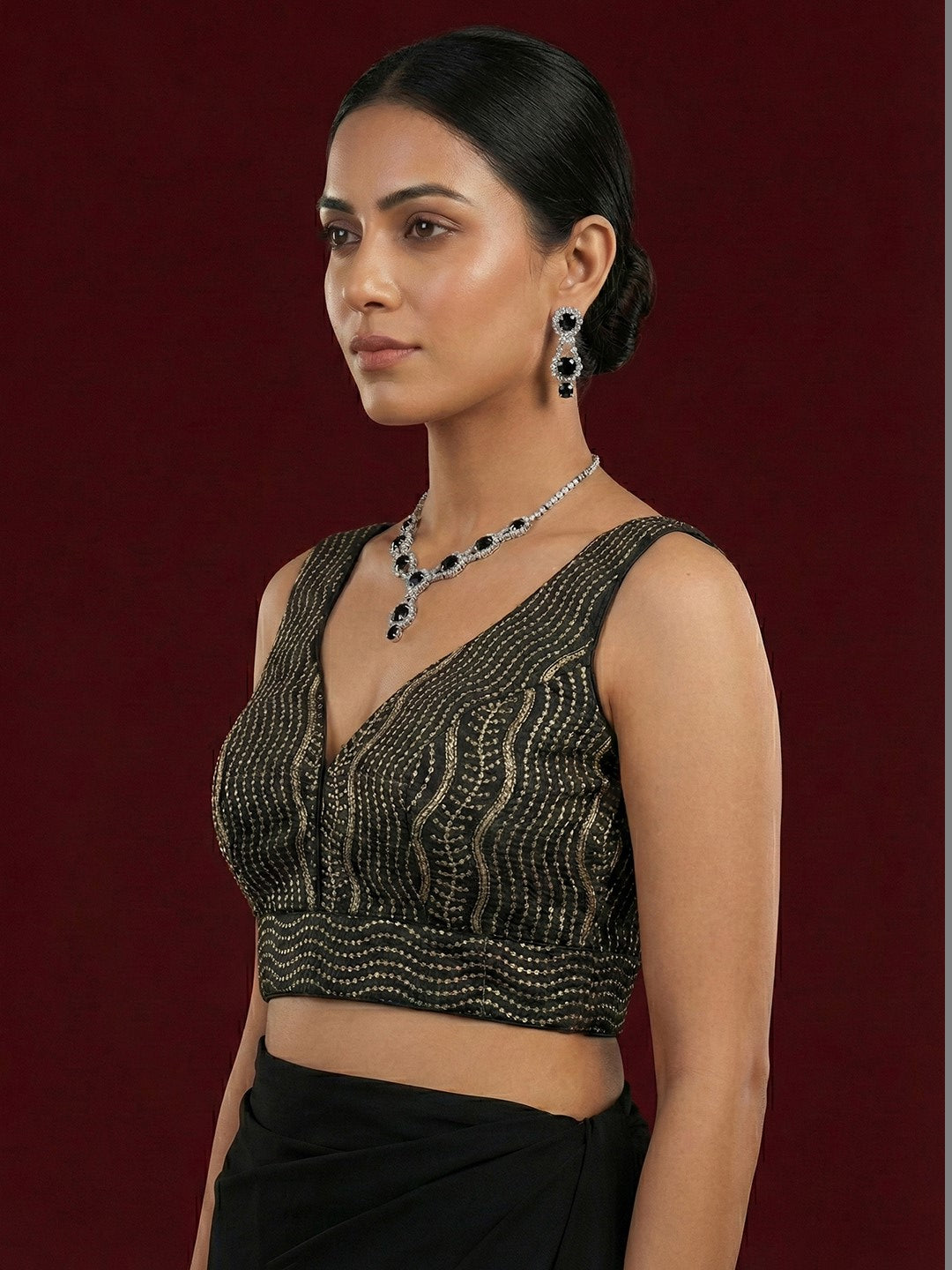 Satin Black Embroidered Blouse
