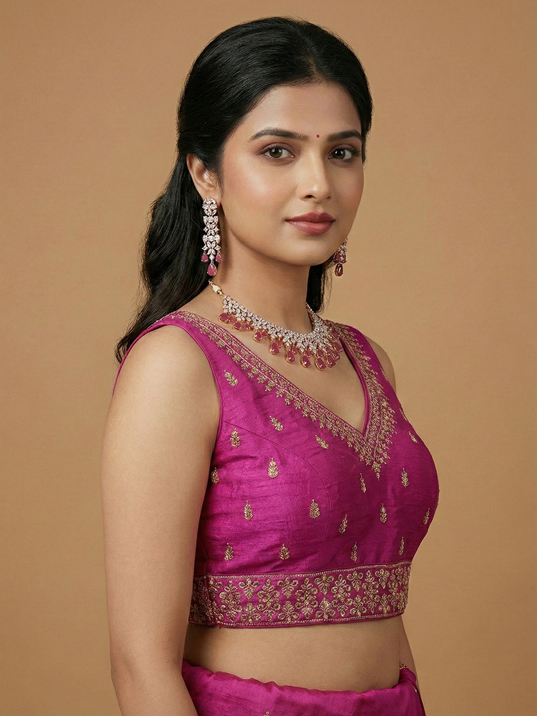 Silk Embroidered Magenta Saree Blouse