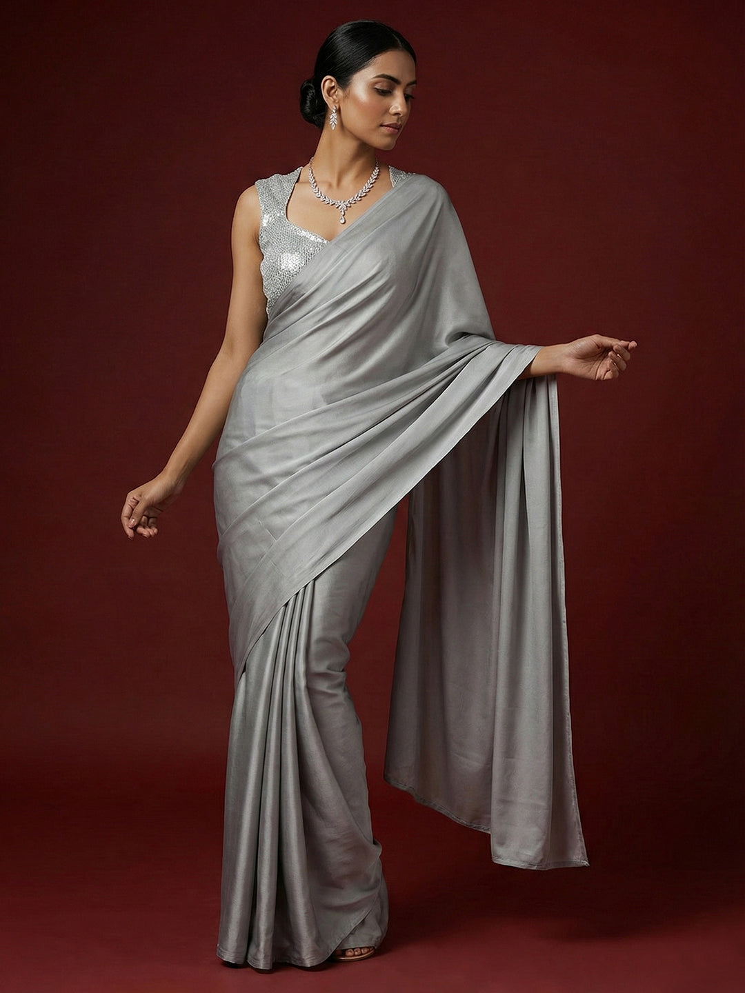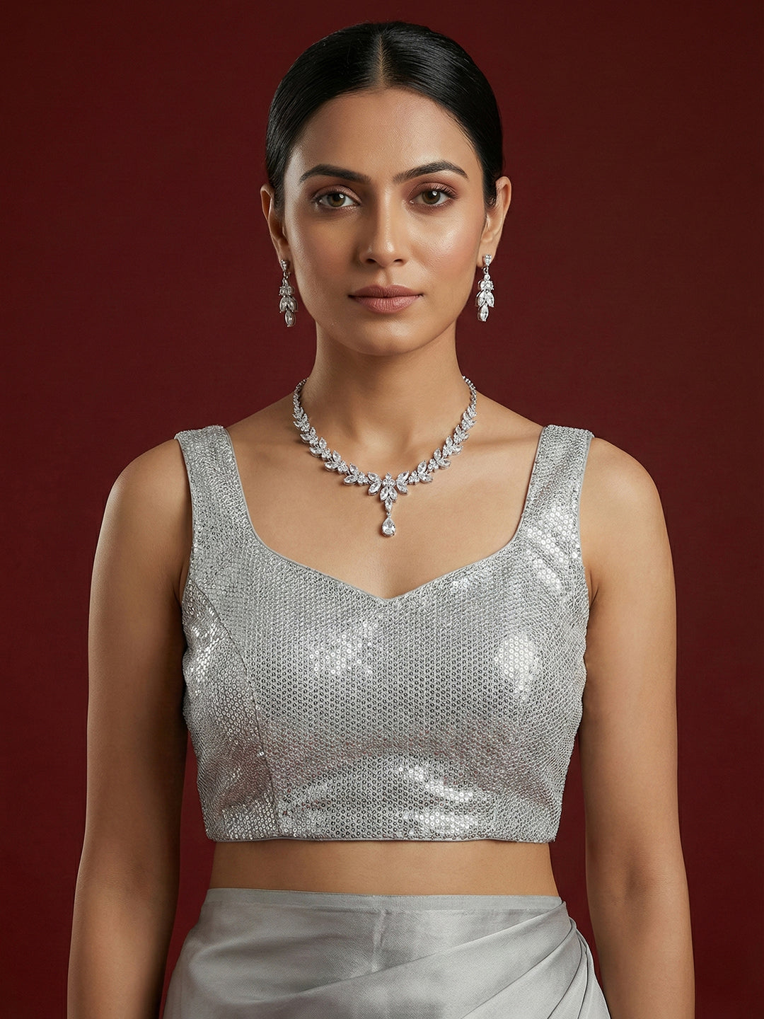 Silk embellished padded saree blouse with sleeveless back open hook and eye closure