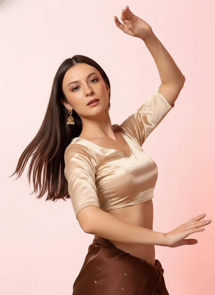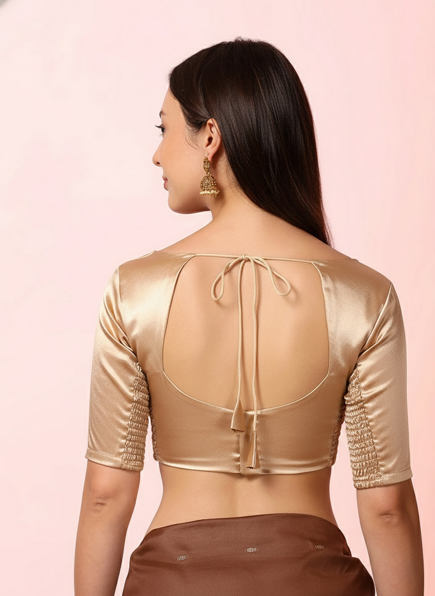 Satin Silk Side Smocking Stretchable Readymade Blouse